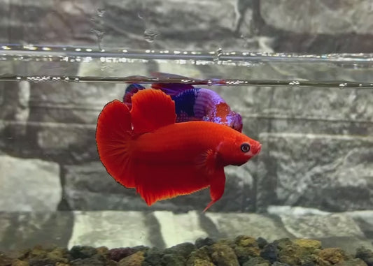 Super Red Halfmoon Male Betta Fish: Bursting with a fiery red brilliance, the Super Red Halfmoon is a spectacle of color. This Betta’s lively hue energizes any space, making it a top pick for those desiring to inject vibrancy and life into their aquatic habitats.