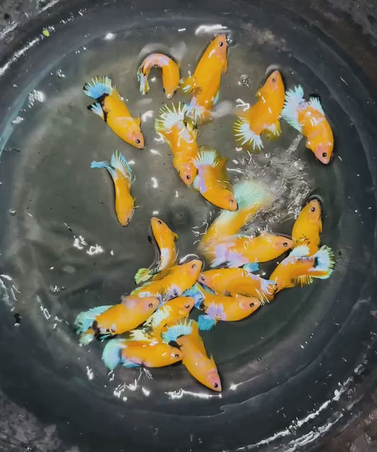 • Mix Galaxy Halfmoon: A vibrant collection that's as varied as the stars in the cosmos, each fish displays a unique pattern and coloration, much like galaxies in the night sky.