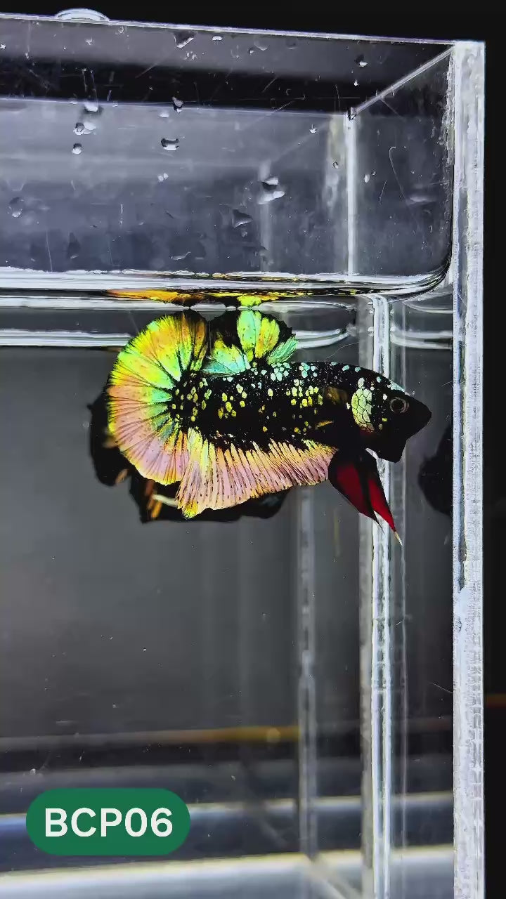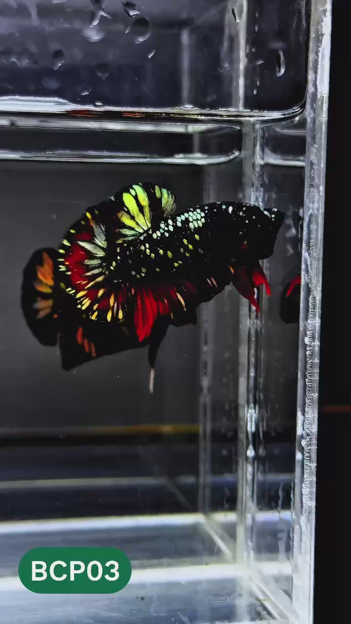 Bred in limited numbers and carefully selected for structure, color depth, and temperament, these plakats embody strength and sophistication. The short-fin plakat form enhances muscle definition and swimming power, making this fish both visually striking and highly resilient.