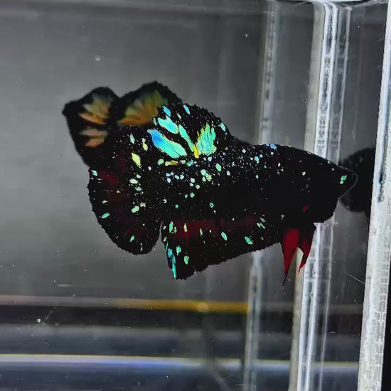 Enter the universe of elegance with our elite Black Star Nebula Plakat Male Betta — a high-grade creation inspired by the depth and mystery of the galaxy itself. 🌠🖤 Each betta features a solid jet-black body scattered with ultra-fine, galaxy-like metallic scales that shimmer like distant stars when light hits just right.