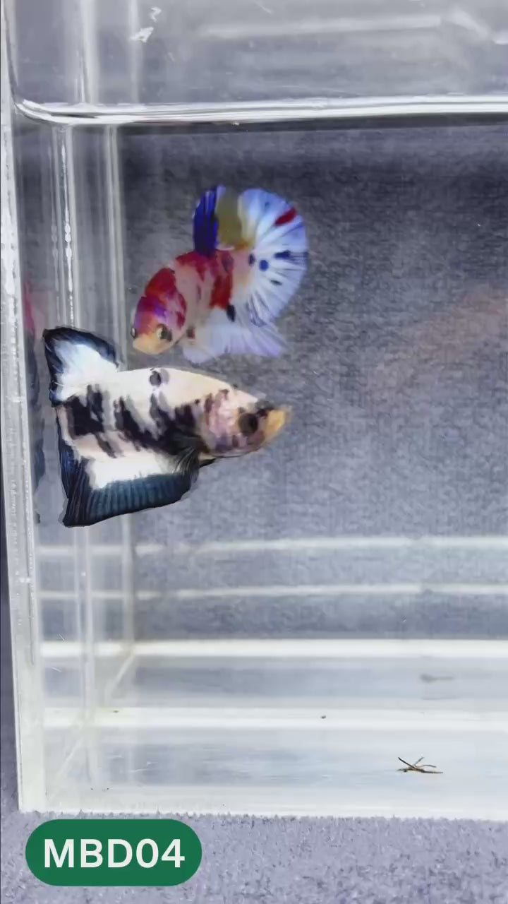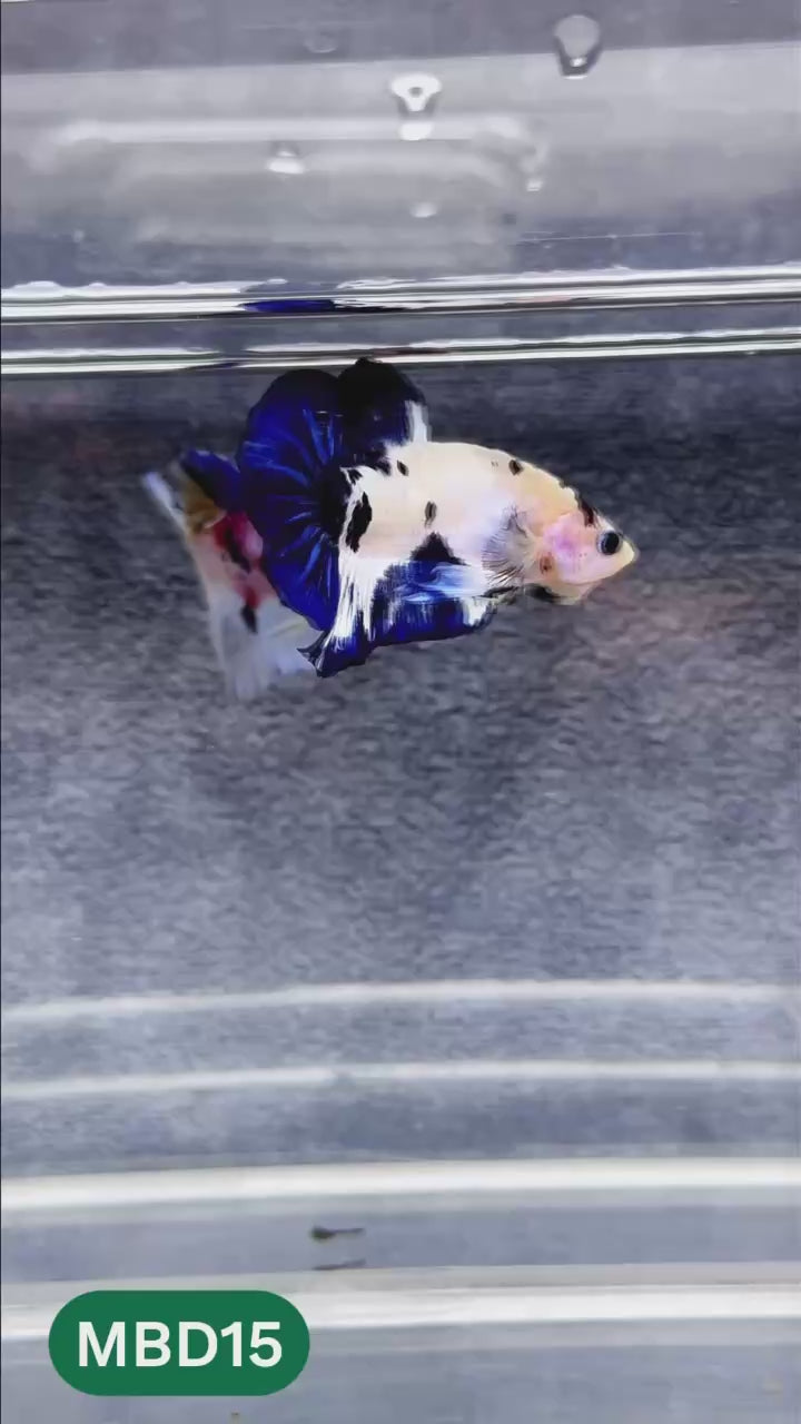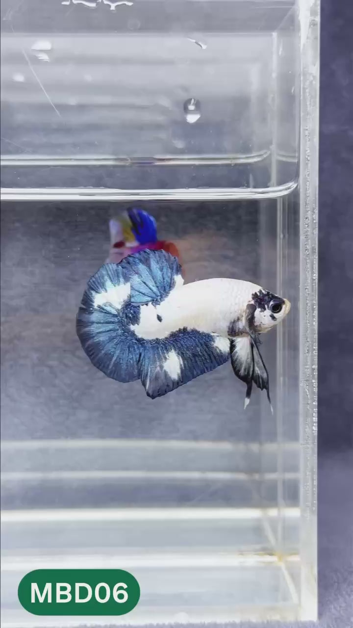The Blue Marble Dot Plakat Betta Fish is a living masterpiece, featuring an unpredictable marble pattern of deep blues, crisp whites, and scattered dot-like markings across its body and fins. This unique coloration makes every fish one-of-a-kind – no two patterns are ever the same.