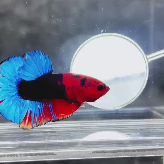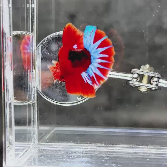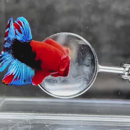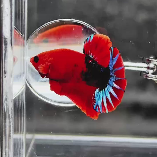 The Hellboy Betta is one of the most iconic and sought-after Plakat bettas. With a blazing red body ❤️ often paired with contrasting black, metallic, or marble patterns, this fish radiates strength and dominance. Bred from premium bloodlines for intense red saturation, sharp form, and a fearless personality, Hellboy doesn’t just swim—it commands attention like a flame in the dark. ⚡